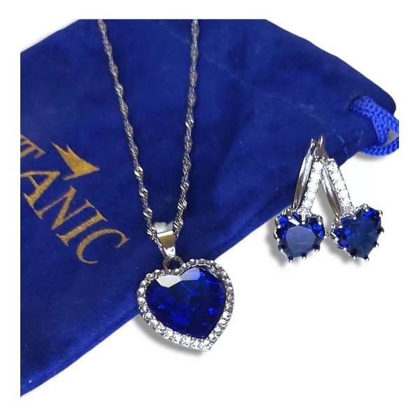 Hermoso set de collar y aretes corazón del mar de Titanic chapado en plata.