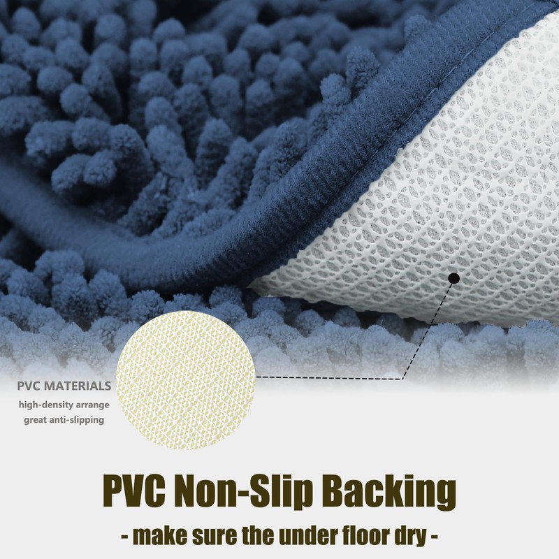 DTXDTech Chenille Bathroom Rug Set 4 Piece with PVC Non-Slip Backing,Soft Bath Rug Set with Toilet Lid Cover,Water Absorb Bath Mats for Bathroom,Machine Washable,Navy Blue