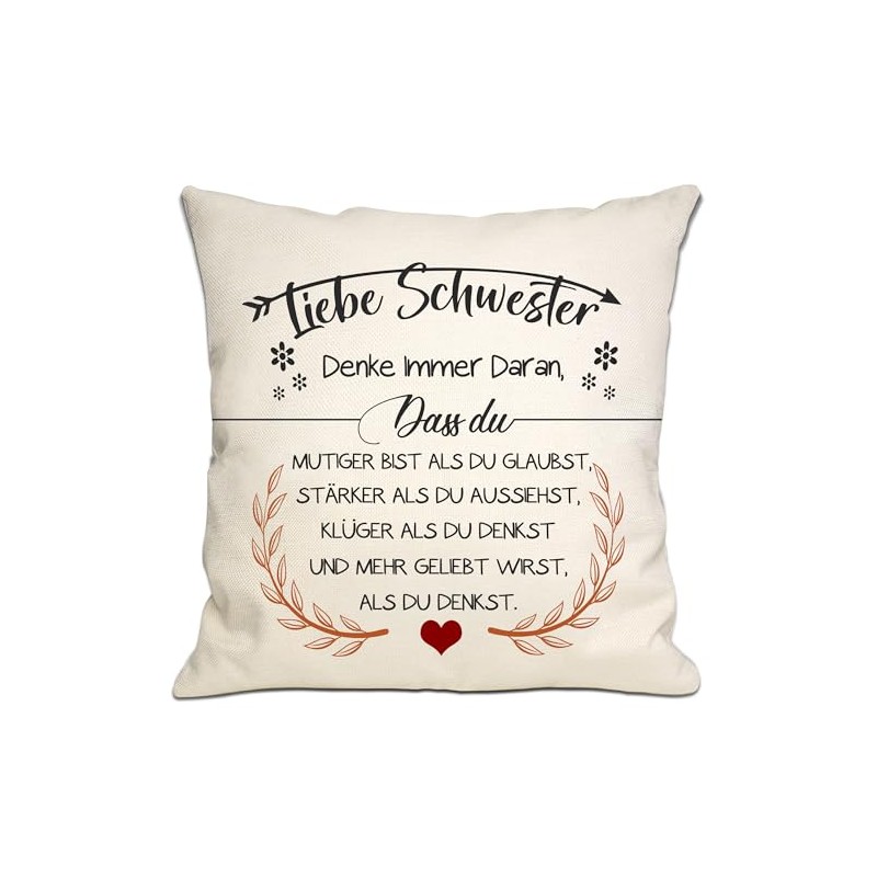 Du mutiger bist als du glaubst Cushion Covers for Sister from Sister Brother Inspirational Gift for Love Sister Birthday Big Little Sisters Gift (Sister-1)