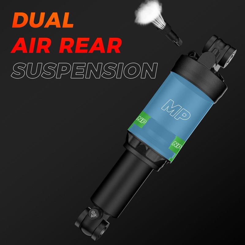 - 【Dual-Chamber Air Spring】 Adjust Main Chamber (MP) pressure to set spring rate (sag) and Negative Chamber (NP) pressure to fine-tune rebound speed—perfect for technical trails, jumps, or long-distance rides.