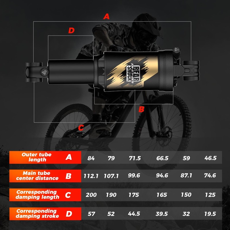 - 【Ultra-Lightweight Design】 30% lighter than traditional coil shocks, ideal for riders prioritizing agility and reduced bike weight.