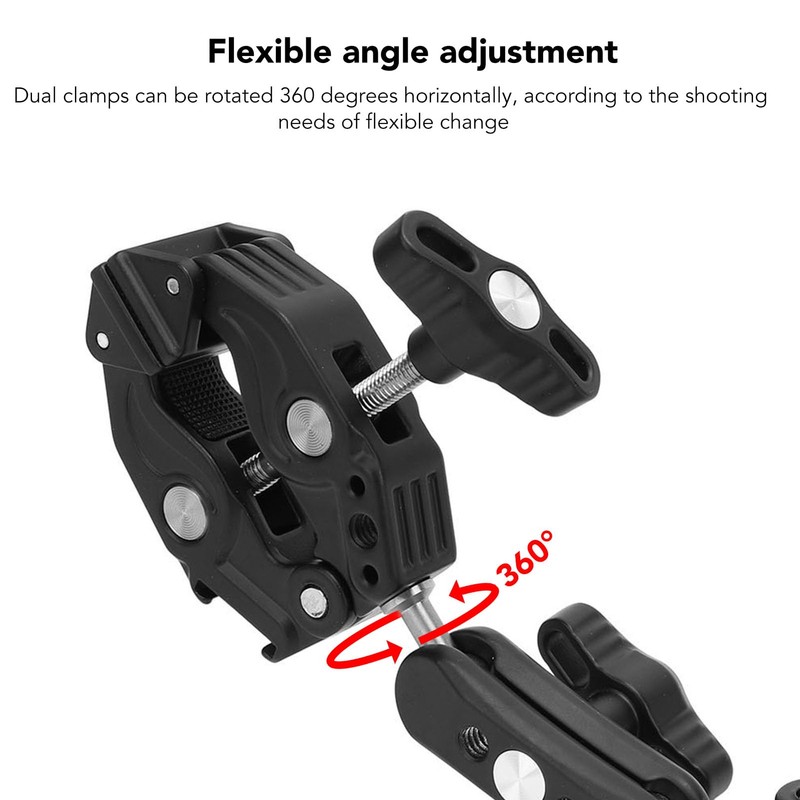 - Wide Compatibility: The crab clamp can open from 12 to 65mm, suitable for various photography accessories or tools such as studio lamp, microphones, LED flashlights, reflectors, boom arms, crossbars, selfie sticks, tripods, umbrellas, and more.