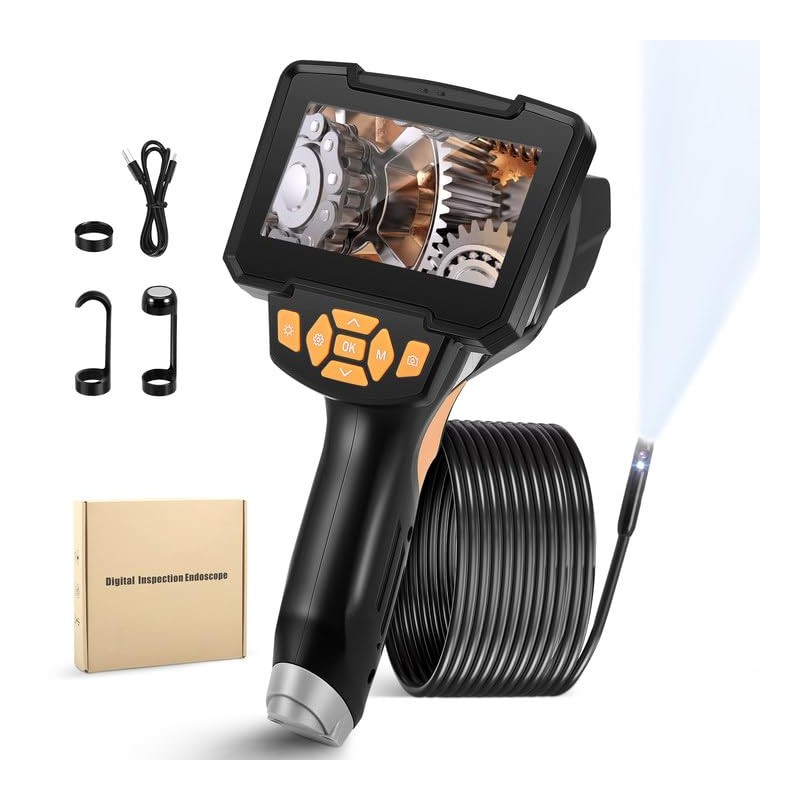 - 【4.3-Inch IPS Screen】This endoscope adopts a first-class IPS screen, which can produce excellent images even under strong sunlight, and is specially designed for outdoor work. The 4.3-inch IPS screen delivers exceptional clarity and vividness. Every detail is presented with precision, ensuring nothing is missed during the inspection. The level of detail this borescope is capable of is amazing. Just turn it on and real-time detection details are instantly captured on the display.