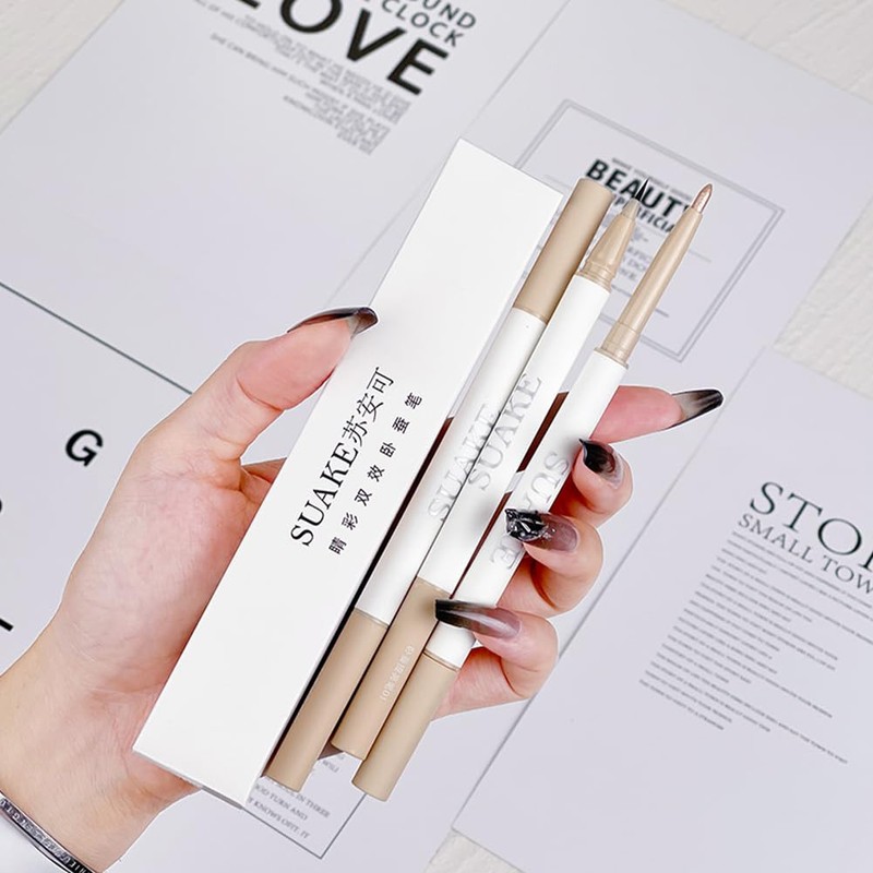 Dual Core Eyeliner Waterproof Pencil Eyeliner [Tear Bag Pen and Eyeliner 2-in-1] Pop Cosmetics, High Density Double Line, Expert Shadow Gray, Double-Sided Intensive Apply, Liquid Eyeliner,
