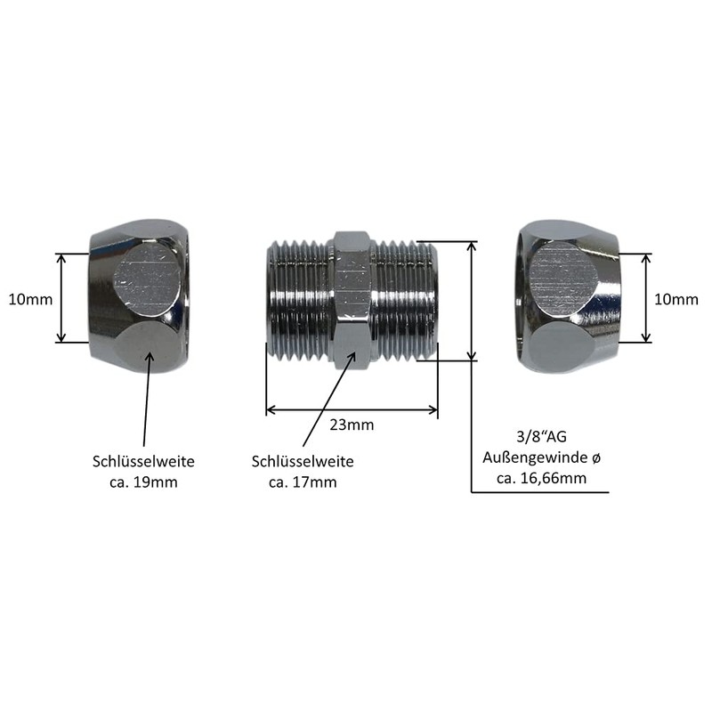 Double crimp screw connection / double nipple 2 x 3/8 inch male thread with 10 mm compression screw connection.