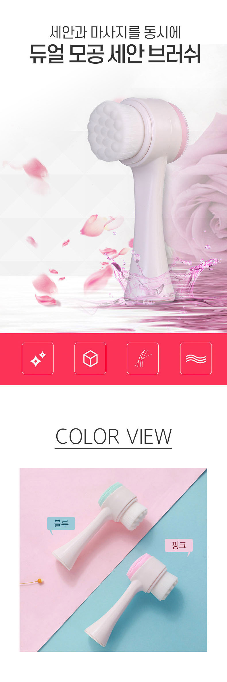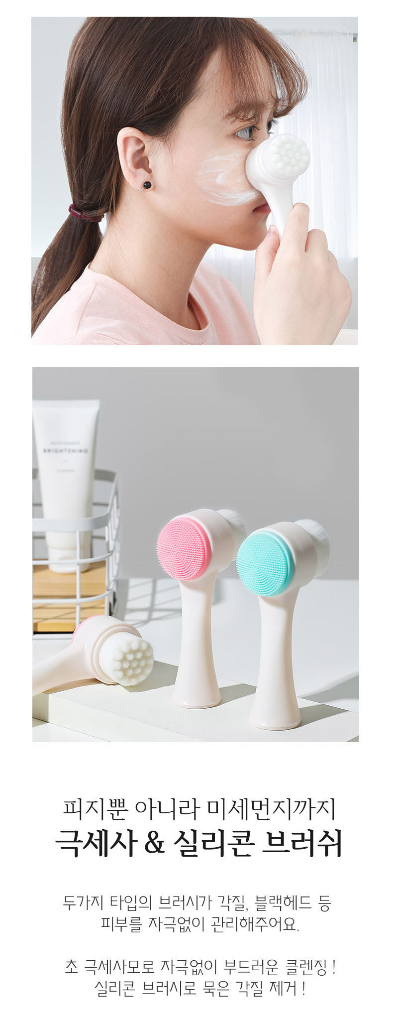 듀얼 미세모 실리콘 세안 브러쉬
