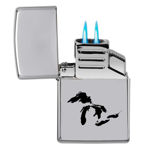 Dual Flame Torch Lighter Great Lakes Michigan (Chrome)
