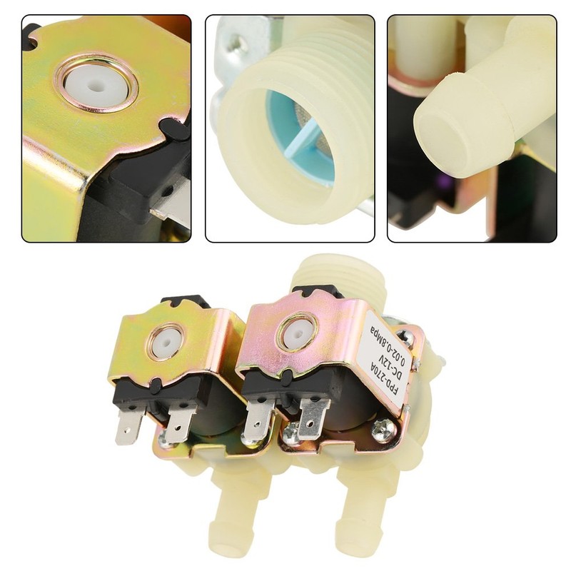 Dual Head Electric Solenoid Valve,DN20 G3/4 DC 12V N/C Normally Closed Water Inlet Plastic Electromagnetic Valve Practical Solenoid Magnetic Valve for Washing Machine