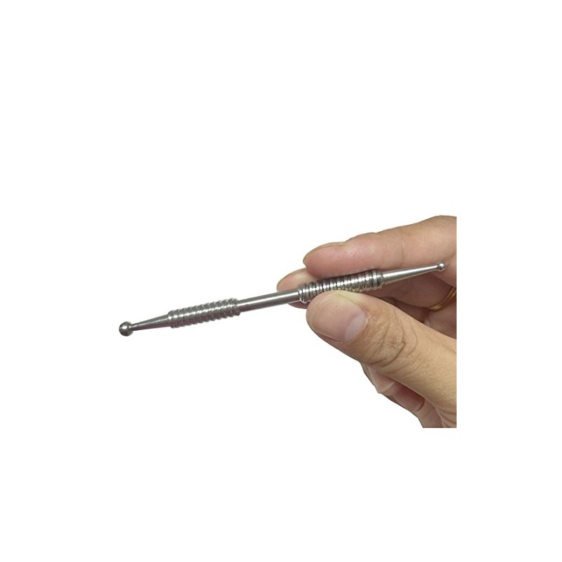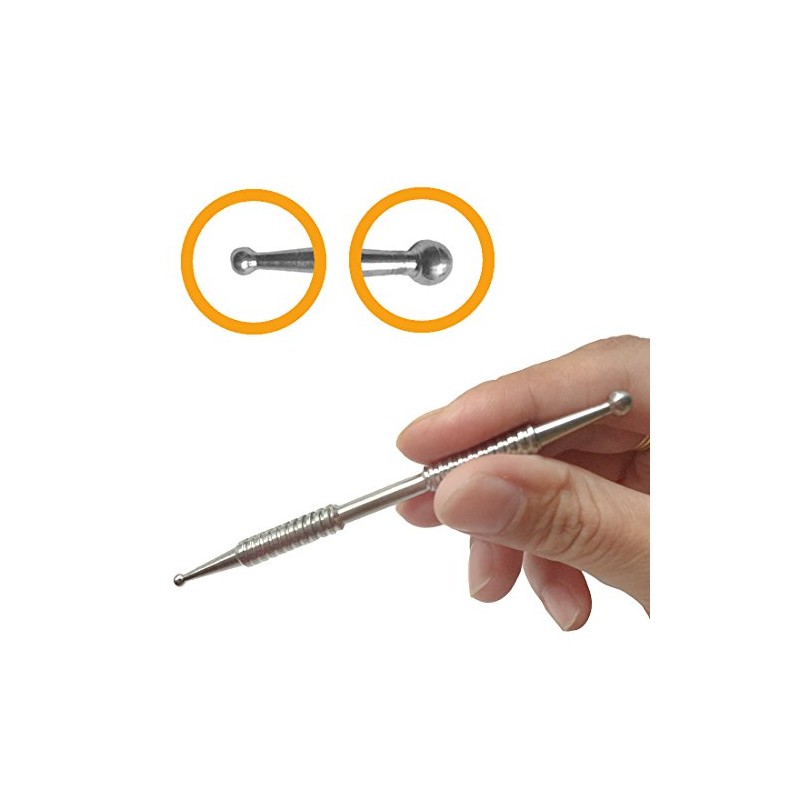 - Dual heads with two different tip sizes for locating and massaging ear and body points