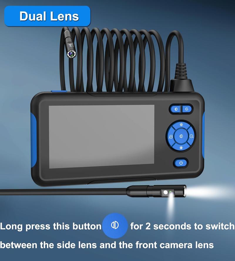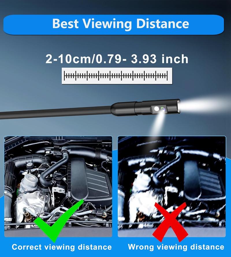 - IP67 Waterproof Dual Lens: This endoscope comes with 2 cameras, one side camera and one front camera, and it can be switched at any time. 1920x1080 resolution for visual detail, 8.0mm diameter camera, special technology with a focal length of 2cm - 10cm. Endoscope is rated IP67 waterproof for use in inclement weather and wet environments.