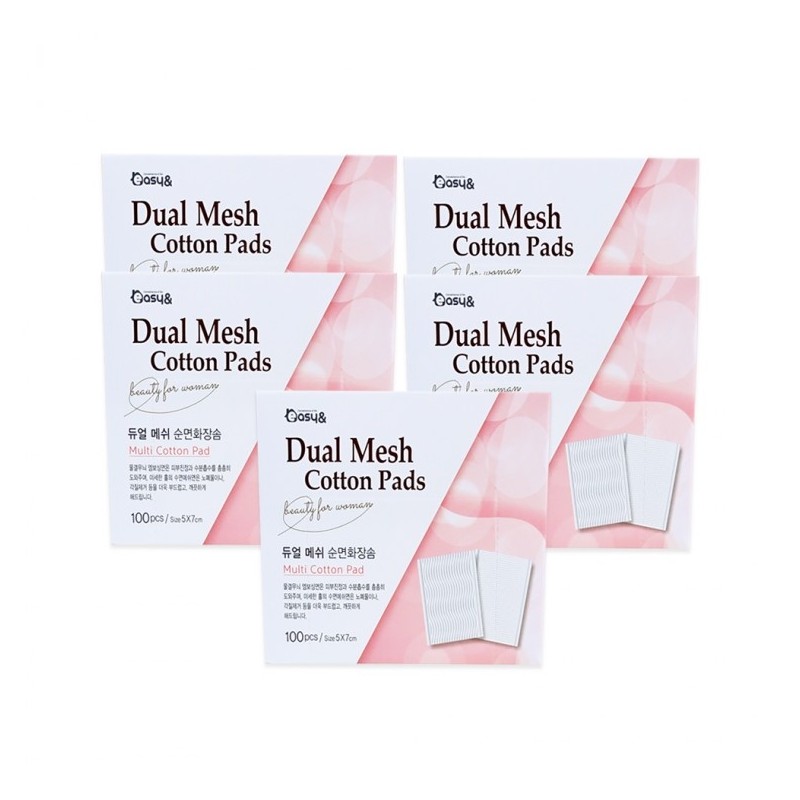 Dual Mesh Pure Cotton Cosmetic Pads (100 Sheets x 5 Packs) Makeup