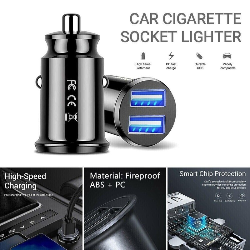 Dual Port USB Car Charger | Compact 12V Car Adapter for Fast Charging | Unive...