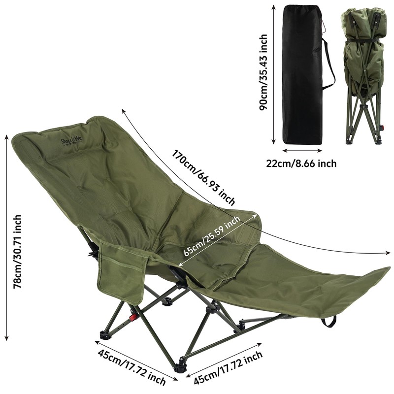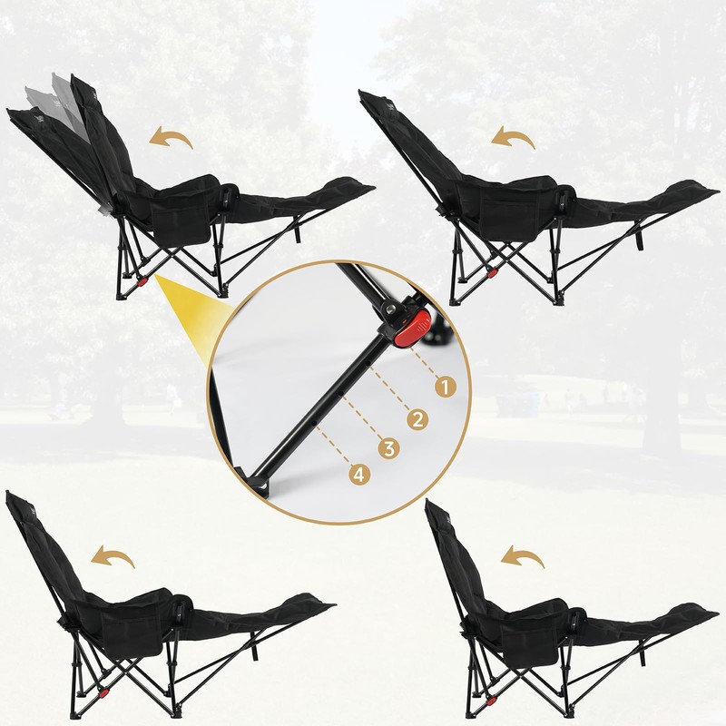 - Designed with ergonomic principles, equipped with a 4-position adjustable backrest to support your back and legs, allowing you to experience ultimate comfort. This folding chair has a side pocket for cell phones, snacks, keys, and other carry-on items