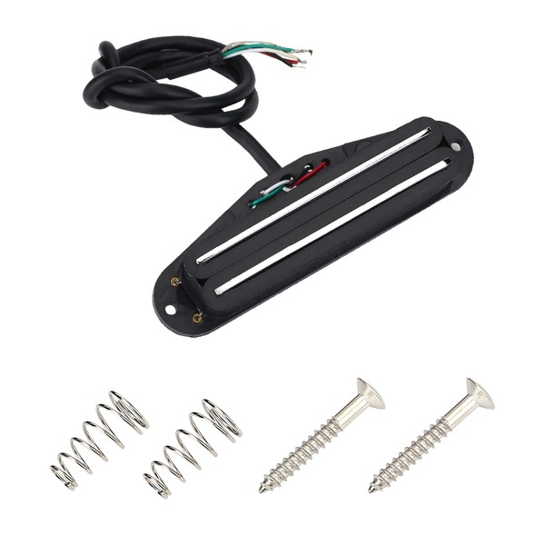1、 Standard single coil size, you can install it in a straightly or Tele guitar with a modification. 2、 4 conductors and chrome dual rails. The pickup has four wires so it can be splittable. 3、 Quiet pickup with 10Kohm resistance high output, please see the reviews for the tone feeling. 4、Give a more sensitive and clear sound. 5、Suitable for electric guitars.