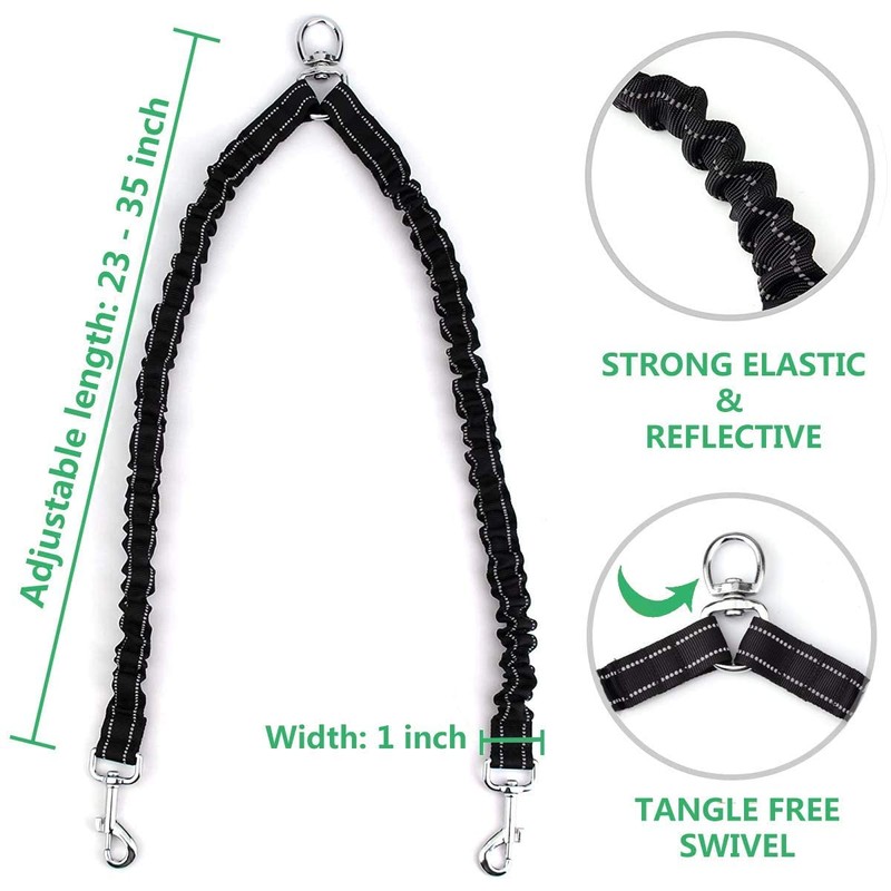 - ELASTIC LEASH AND TANGLE-FREE DESIGN - The elastic leash reduces the risk of neck and shoulder injuries to you and your dog during the leash pulling process.The 360° swivel buckle design automatically adjusts when your dog crosses over, allowing your dog to move from side to side without restricting or messing up the leash.