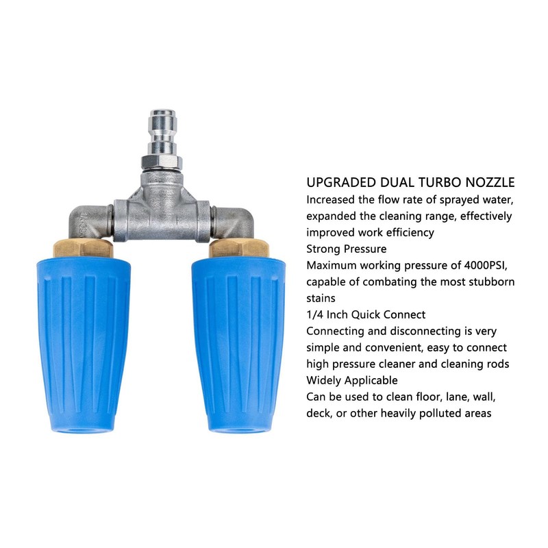 - [Dual Turbo Nozzle] The upgraded dual turbo nozzle increases water flow, expands the cleaning range, and effectively improves your work efficiency.
