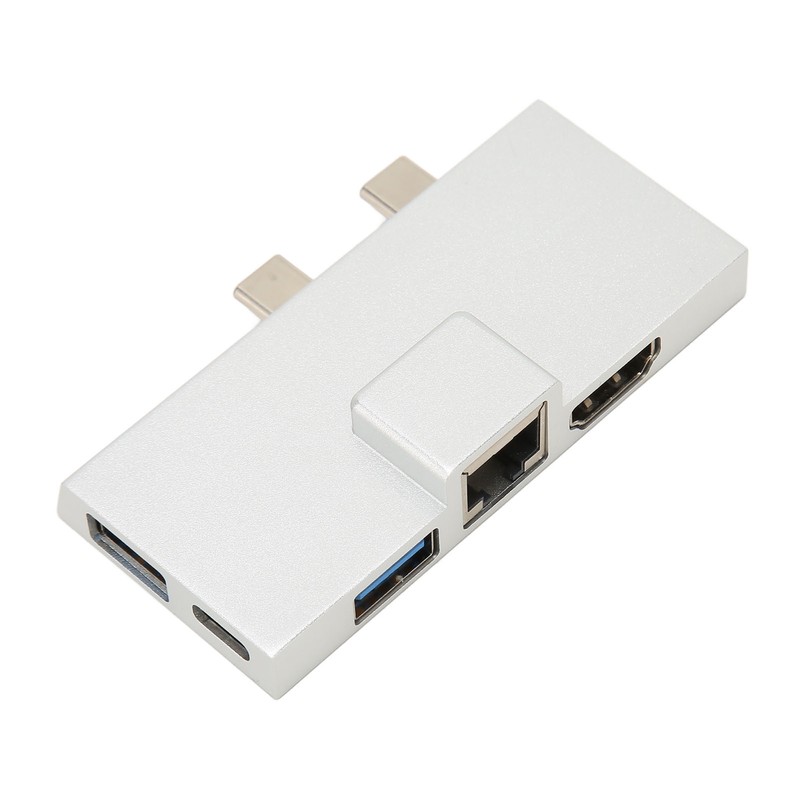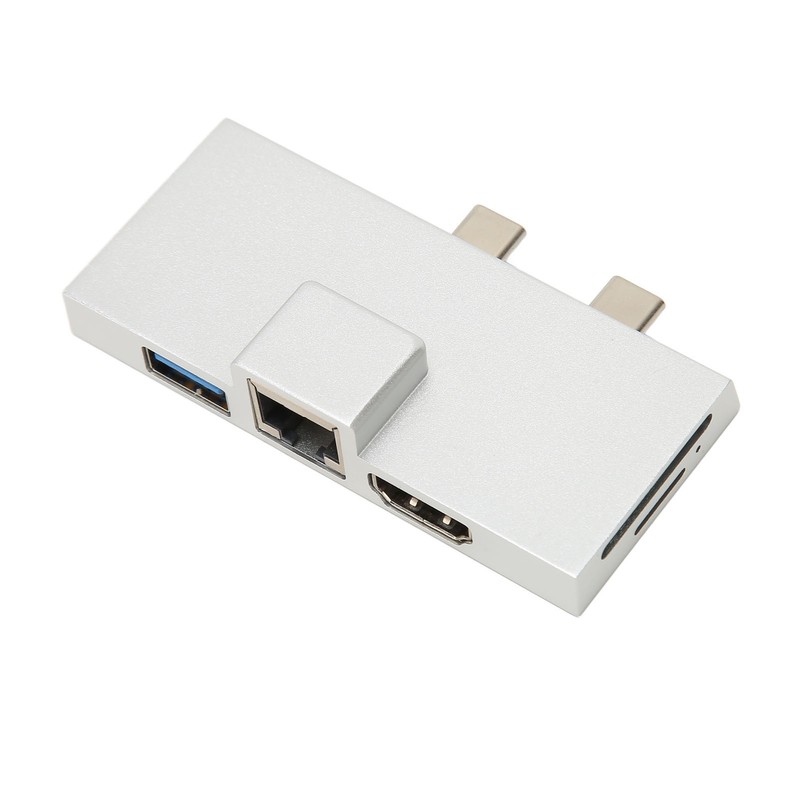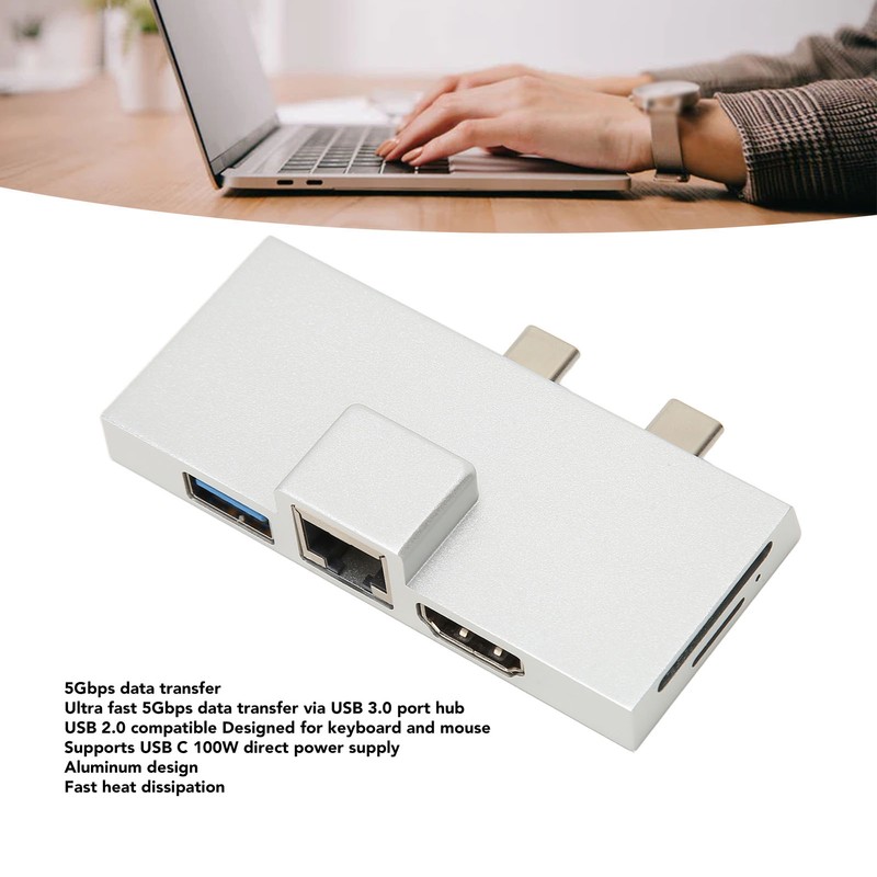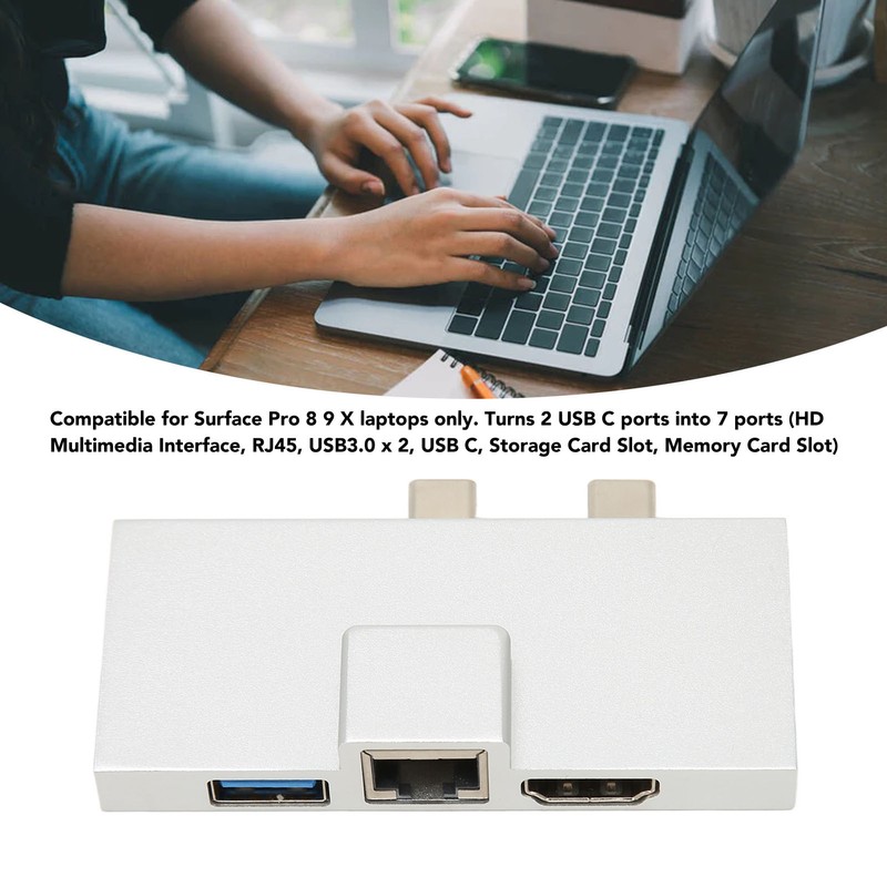 1、Perfectly Compatible: USB C hub is only compatible with Surface Pro 8 9 X laptops. Turns 2 USB C ports into 7 ports (HD Multimedia Interface, RJ45, USB3.0 x 2, USB C, Storage Card Slot, Memory Card Slot), plug and play, no drivers required. 2、High Resolution: The USB C hub supports video resolutions up to 4K 60Hz 30Hz. Freely display high resolution 4K UHD 60Hz 30Hz or Full HD 1080P video from your laptop to your HDTV, monitor or projector via the HD Multimedia Interface port, backwards supporting 2K 1080p 720p 480p 360p resolution. 3、Fast Data Transfer: Ultra fast 5Gbps data transfer via Dual USB C expansion hub via USB 3.0 port hub. The transfer speed is very fast. It can help you save a lot of time. USB 2.0 compatible Designed for keyboard and mouse. 4、Direct Power Supply, Practical Accessories: Dual USB C expansion hub supports USB C 100W direct power supply. Aluminum design for fast heat dissipation. This docking station is handy for Surface Pro 8 9 X laptop accessories. 5、Expansion Function: USB C hub allows you to expand 2 monitors. You can do different jobs on different monitors. Support up to 4k 60Hz 30Hz displays via the HD Multimedia Interface port or up to 4K 30Hz displays via the USB C 4 port.