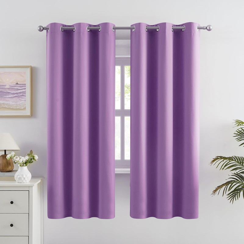 DUALIFE Blackout Solid Curtains for Kids Room Purple Window Treatment Drapes Thermal Insulated Curtains for Living Room, 2 Panels - 42 inches Wide by 72 inches Long