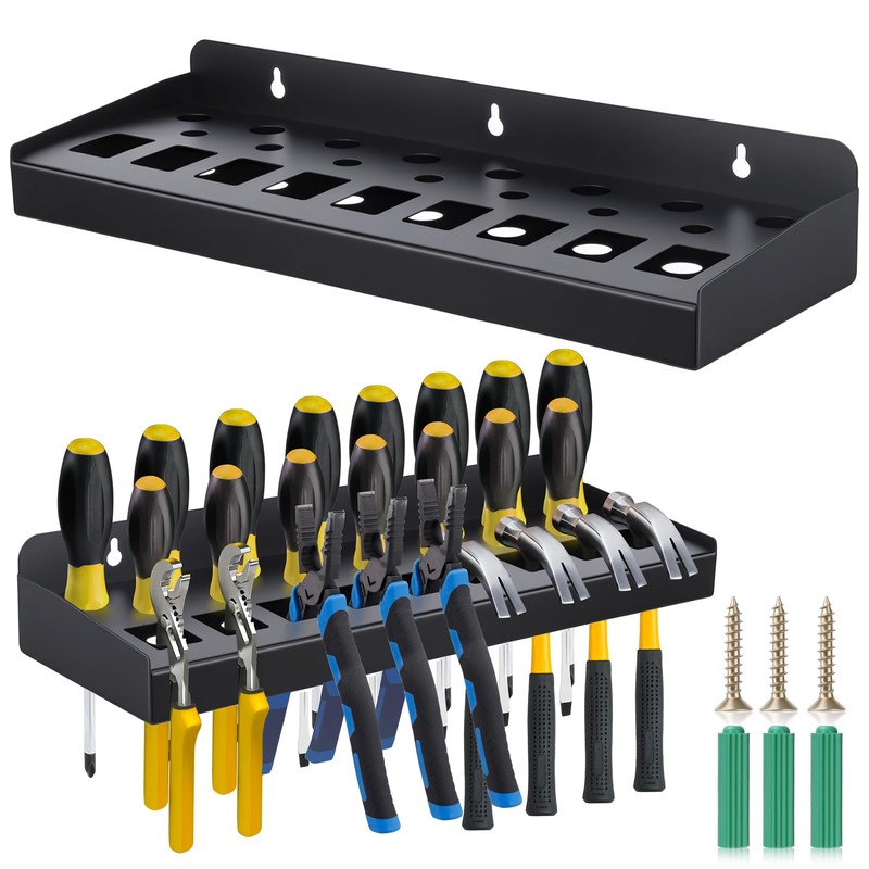 - 【Simple Installation】Our screw driver organizer package contains installation accessories, which does not require reassembly. You only need to install and fix the shelf on a mixed top drawing, brick wall or wooden cabinet through our accessories. It is very simple and saves you time.