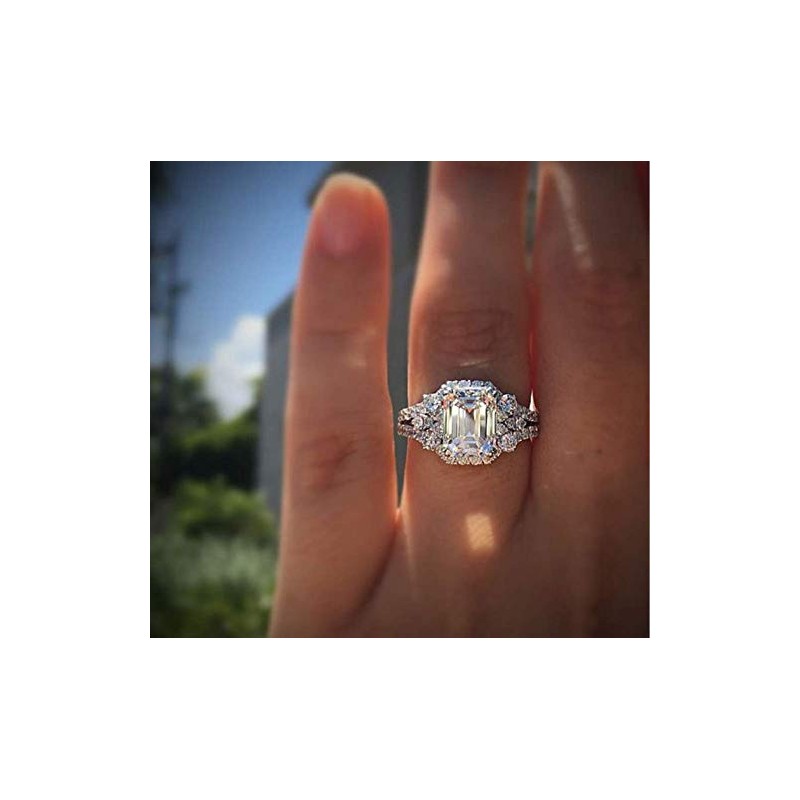 Duan New Princess Square Simulation Diamond Ring 925 Silver Elliptical Perfect Cutting 3ct CZ Engagement Rings Size 6-10, US Code 6, Sterling Silver, Cubic Zirconia