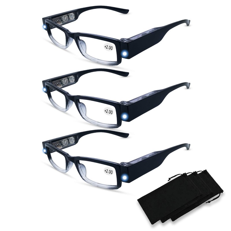 - Magnifying Glasses with Light:Convenient 3 pack of readers Great for home, office, or bedside use. Keep a pair at your desk, in your bag, and in your favorite reading spots.