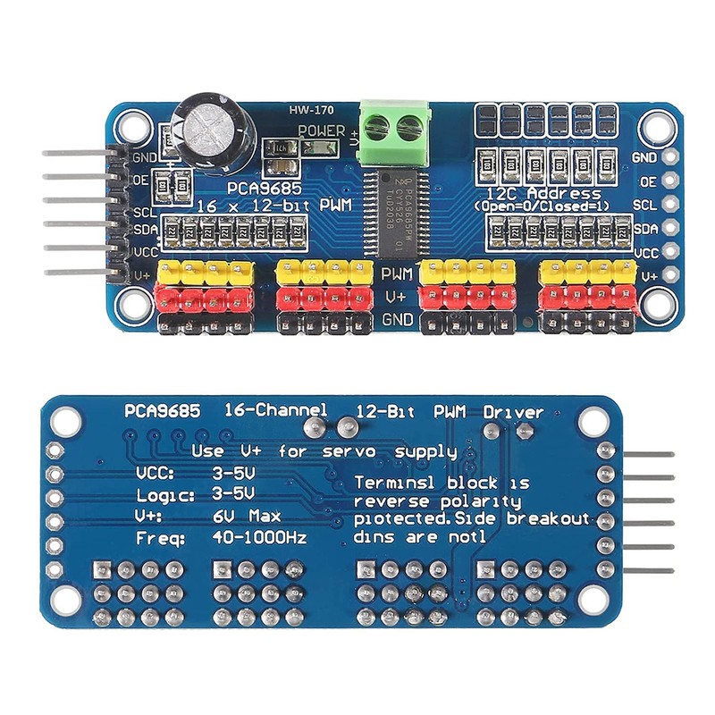 PCA9685 16-Channel 12-Bit PWM Servo Driver can help a lot when there are insufficient PWM output pins for the MCU in your project.