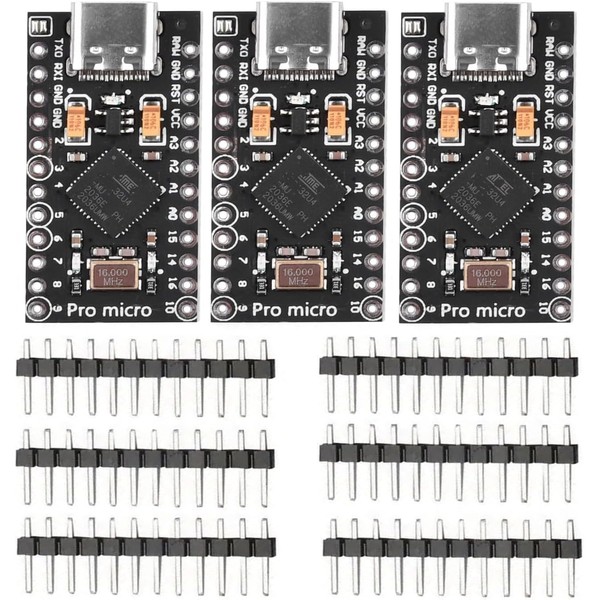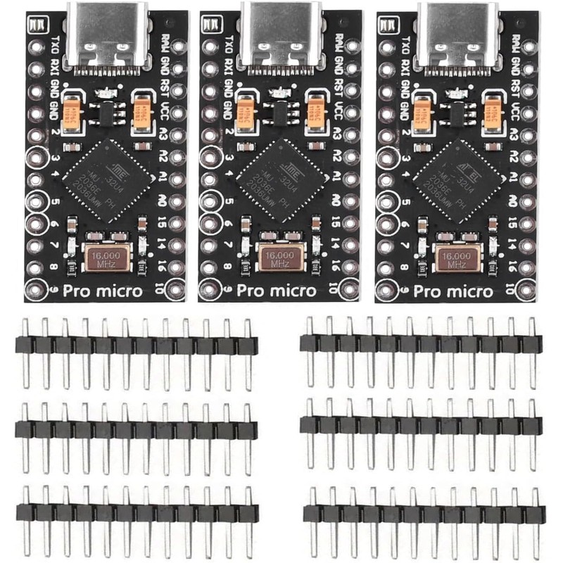 DUBEUYEW Pro Micro 32U4 5V 16MHz Type-C Development Module Board with 2 Row pin Header Compatible with Leonardo (3PCS)