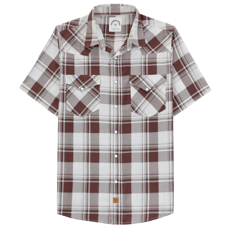 Dubinik®50% Viscose derived from Bamboo,50% Polyester Mens Short Sleeve Western Cowboy Pearl Snap Casual Plaid Shirts for Men Chocolate Brown