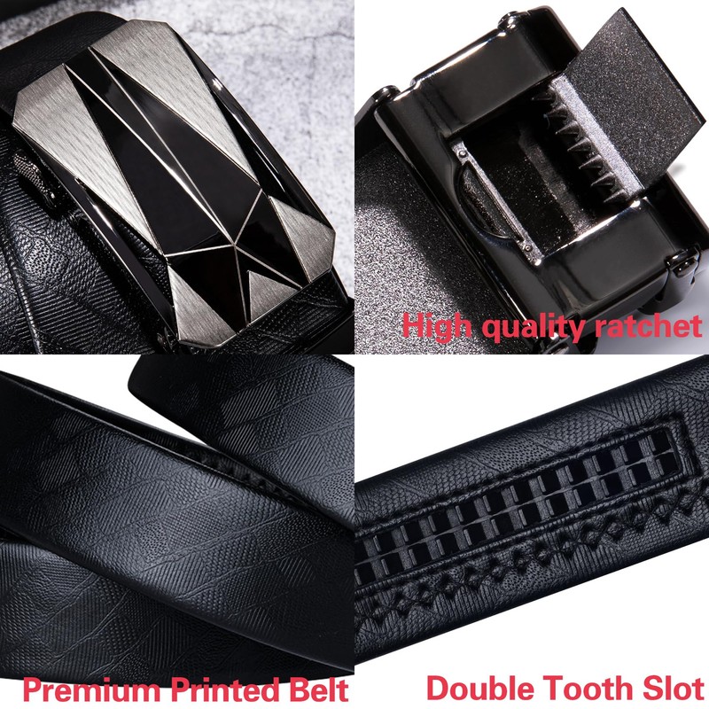 Dubulle Men's Designer Belt Black Buckle Ratchet Genuine Leather Adjustable Golf Sliding Removable Gift