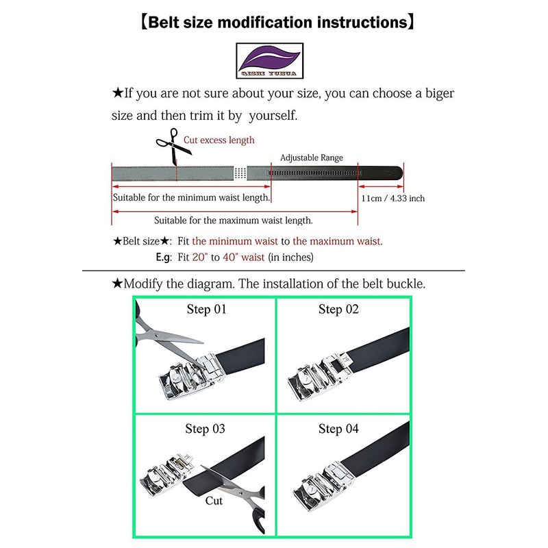 - EXACT SIZE:Fashion leather belt length:43"(110 cm) to 51"(130 cm),Designer belt fit waist size:22" to 49",Ratchet belt width:1 3/8"(35 mm).Trim to fit:easy cut the genuine leather belt according to your waistline