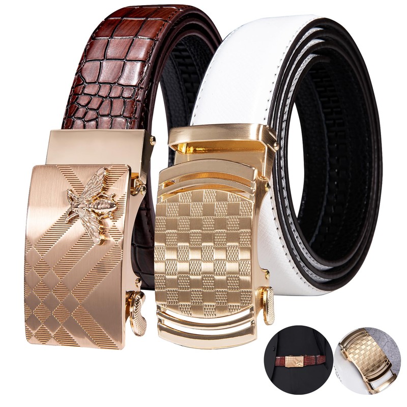 - COMFORT & DURABILITY: Our leather belts are made of top-layer cowhide, with clear and tight lines that are both durable and comfortable. Our ratchet automatic buckles are scratch-resistant and made of advanced composite materials.