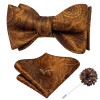Dubulle Self Tie Bow Ties and Lapel Pin for Men Paisley Solid Mens Bowtie Bronze Gold
