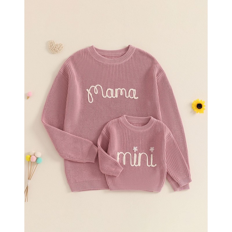 - ❄️Size: Toddler baby knit sweater fit from baby girl clothes 0-3 months, 3-6 months, 6-9 months, 9-12 months, 12 months girl fall clothes, 18 months girl clothes.Mama sweater fit from S, M, L, XL, XXL.