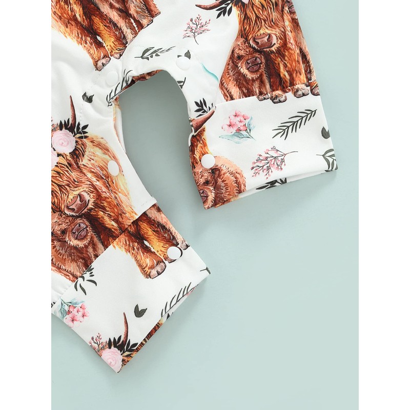 - Features: The baby girl’s romper is sleeveless, crew neck, cow and flower printed pattern makes your little girl more fashionable. Crotch buttons are convenient for diaper changing.