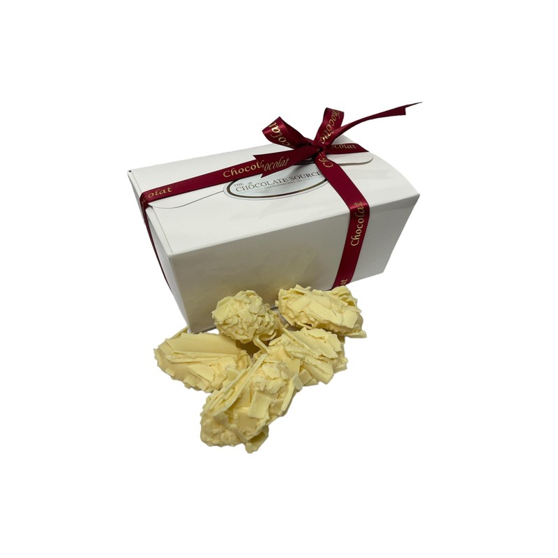 - The light, almost mousse-like chocolate truffle centre is enrobed in a layer of smooth Belgian white chocolate then coated in white chocolate flakes.