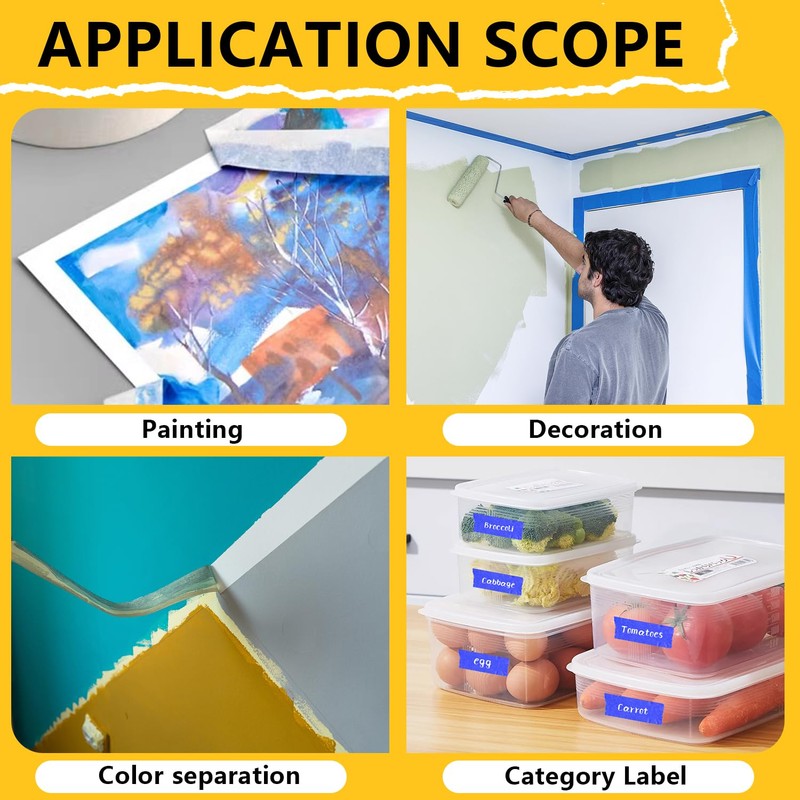 • Easy to Use:Apply the painters tape to the surface while pressing firmly, then allow the paint tape to sit for approximately 30 to 60 minutes before painting. After completing the job, when the paint is dry to the touch, slowly lift the tape upward and remove it at a 45-degree angle. For good paint results, make sure the surface is clean, dry and dust-free so that the tape can be properly applied. If you have any questions, please feel free to contact us. We will assist you within 24 hours