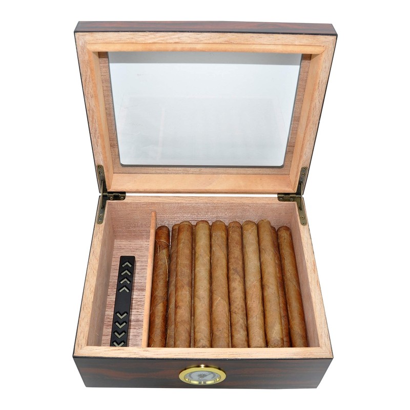 - Keep Cigars Fresh: Tempered glass top for easy reviewing, the handmade secure seal on closure, according to the manual, filling the humidifier, observing hygrometer, to create a moisture retention system, keep your cigars fresh for ages. (Cigars do Not Include in packaging).