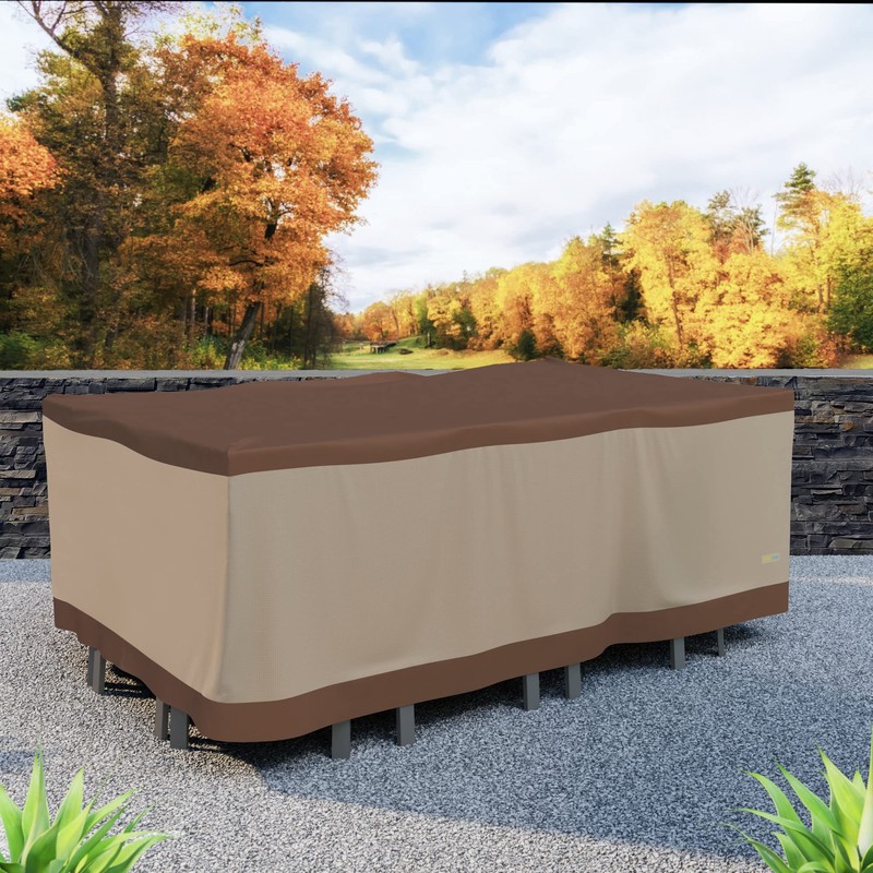 Ideal for use in harsh weather and high wind conditions. Duck Covers Ultimate Series patio furniture covers are designed to protect patio furniture from dust, dirt, sun, rain and heavy snow. Manufactured using a combination of high-strength polyester top panel, plus innovative, multi-layer, breathable side panels to help eliminate condensation. The multi-layer, breathable side panels eliminates the need for vents and provides additional cover height, unlike shorter competitive covers which offer less protection. High-strength polyester base for added durability. Mocha Cappuccino color. Two-year limited warranty has you covered. Migrate to Duck Covers today!