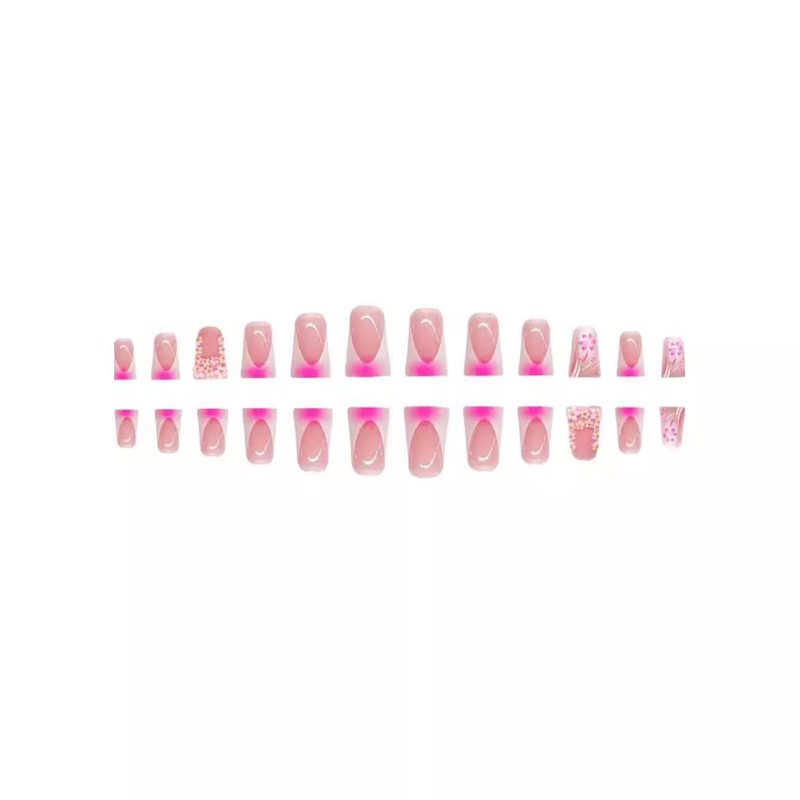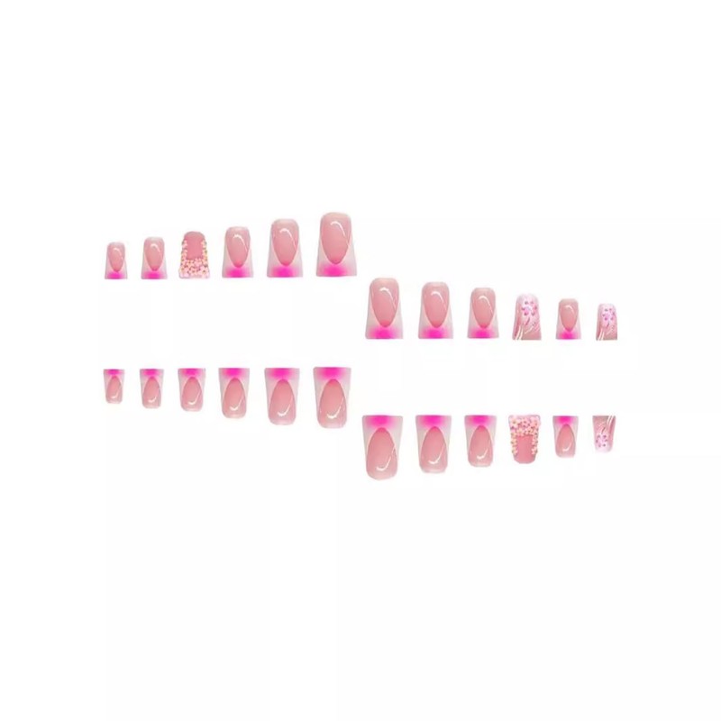How to Use: 1.Choose the right size fake nails for each finger. 2.Exfoliate and wash the edges of your nails to keep them clean and dry. 3.Clean and disinfect your nails, wait for the nails to dry before proceeding to the next step. 4.Choose a fake nail that fits your size, use jelly glue to press the fake nail onto the nail and hold for 30 seconds. 5.Trim your desired nails according to their shape and length.(You can use nail stickers or other nail accessories to attach fake nails to create your favorite style)