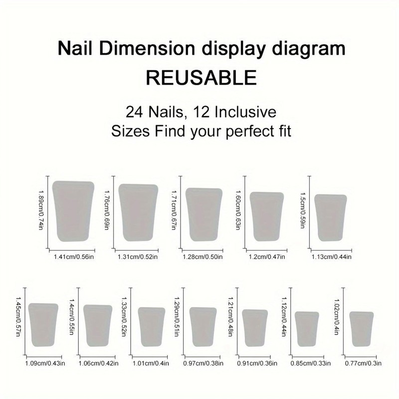 - Easy to Use: After trimming and cleaning your nails, choose a false nail that is suitable for your own nail size, apply with glue, and then press it on your nails for 15 seconds, then you can have a perfect new nail.(Fake nails will stay on longer if you clean your nails before application and avoid water within the first hour after wearing them)
