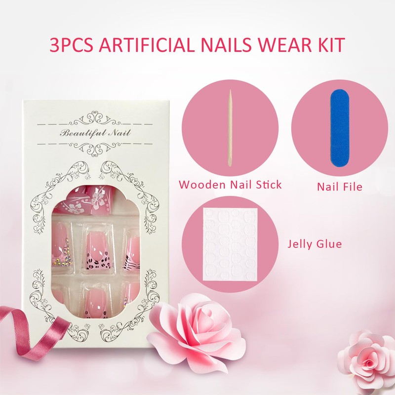 - Duck Glue on Nails Kit: You will get 24 pcs duck press on nails, 1 pcs nail file, 24 pcs nail jelly stickers and 1 pcs wooden stick for removing false nails tips. No need to buy other things, you can get the nail salon-like effect
