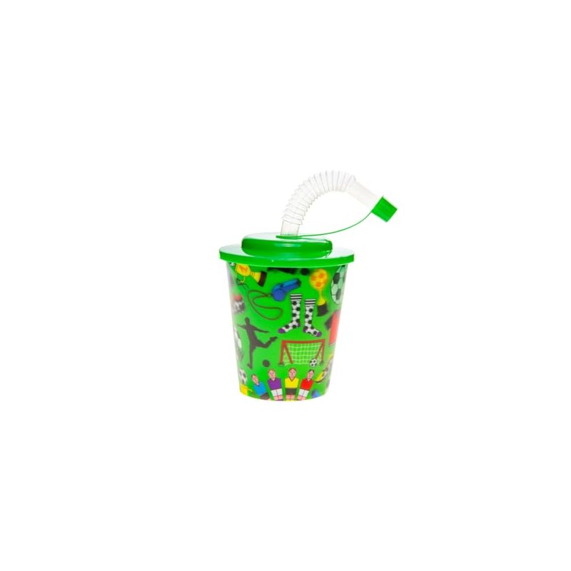 DUCKIEZ 3D design Plastic Re-Useable Drinking/Sippy Cup. Comes with Straw and Lid. 250ml capacity. (12 Cups, Football)