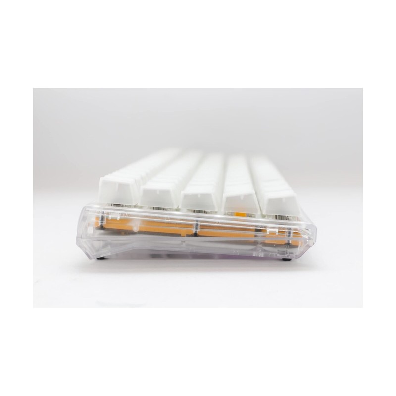The One 3 series features Ducky's QUACK Mechanics design philosophy which focuses on achieving best-in-class aesthetics, hotswap functionality, sound dampening, stabilizers, and more! Enjoy the best acoustics you'll find in a prebuilt thanks to the One 3's silicone plate dampener and EVA foam case dampener. The Ducky One 3 SF Aura White is hot-swappable with Ducky's exclusive top-of-the-line Kailh Yellow Sockets. Ducky's V2 stabilizers provide improved stability, feel, and sound. 3-level adjustable feet, an improved PCB design, detachable braided USB-C cable, and an improved macro layout are just a few of the features that makes the One 3 rise above the rest. The real star of the show, though, is the RGB. The keycaps are Double Shot Pudding style, with translucent sides and an opaque top. The case is also clear, allowing for an all-encompassing RGB experience.