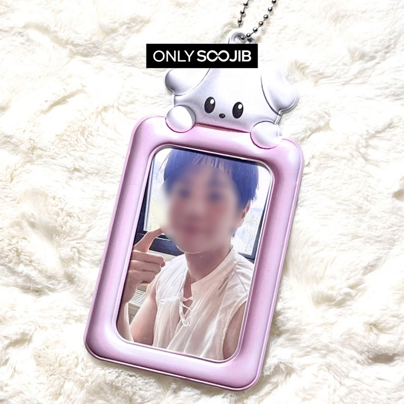 DUCKY WORLD Circular Pink Dog Photo Card Holder Keyring