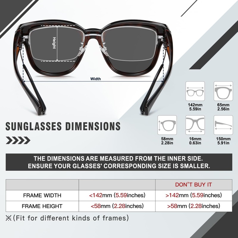 - Classic over-glasses sunglasses: designed for people with myopia or hyperopia, classic wraparound sunglasses from the myopia group offer the opportunity to enjoy sunbathing without strain. Simple design, easy to match, bring a new mood.