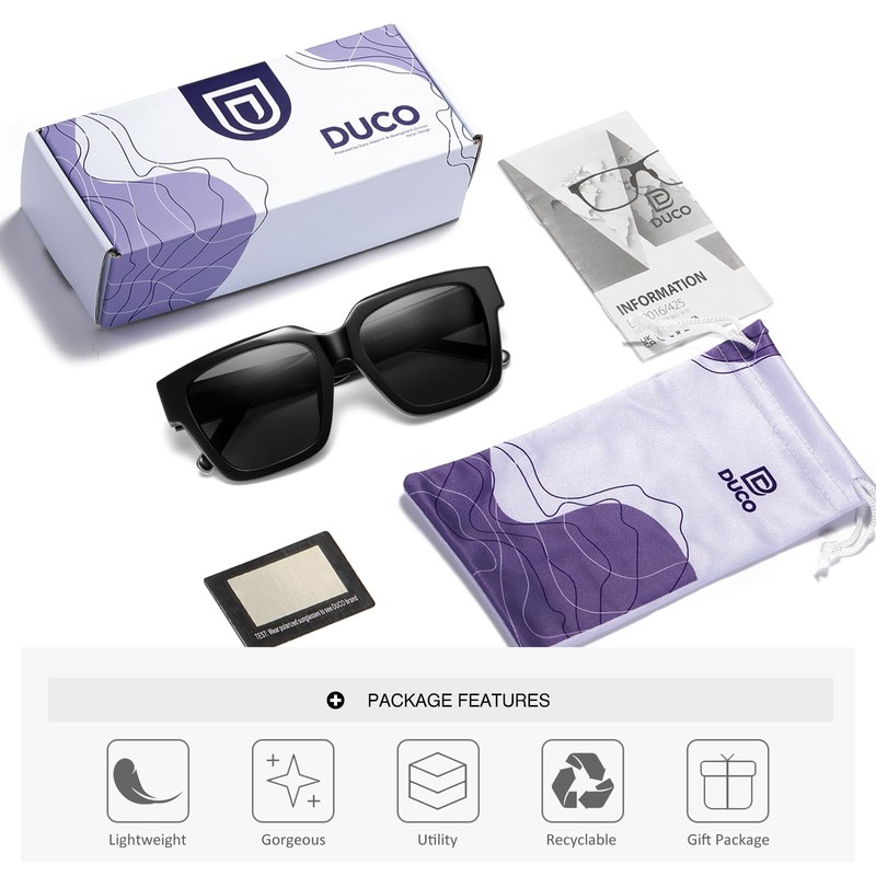 DUCO Retro Rectangular Acetate Polarised Sunglasses for Men UV400 Protection Men's Sunglasses Driving Hiking Glof Sunglasses DC2342, black frame gray lens
