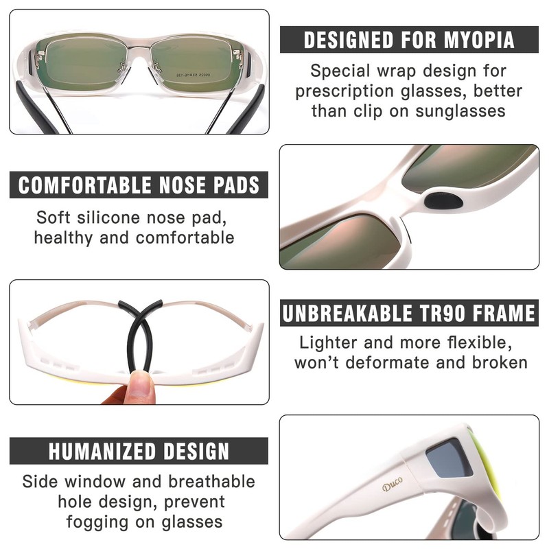 - 【30-DAY MONEY-BACK GUARANTEE】 - We provide you advanced wear over sunglasses, and we still offer you the try-at-risk guarantee. If you have any questions after receiving, please feel free to contact us. DUCO provides a lifetime damage warranty for customers and friends
