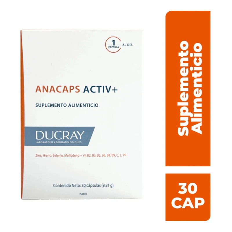 Ducray Anacaps Activ+ – 30 cápsulas 💊🌿 | Suplemento completo que fortalece el cabello y las uñas desde la raíz. Combate la caída capilar por estrés, fatiga o deficiencia nutricional. Fórmula con biotina, hierro, selenio y vitaminas. ✨