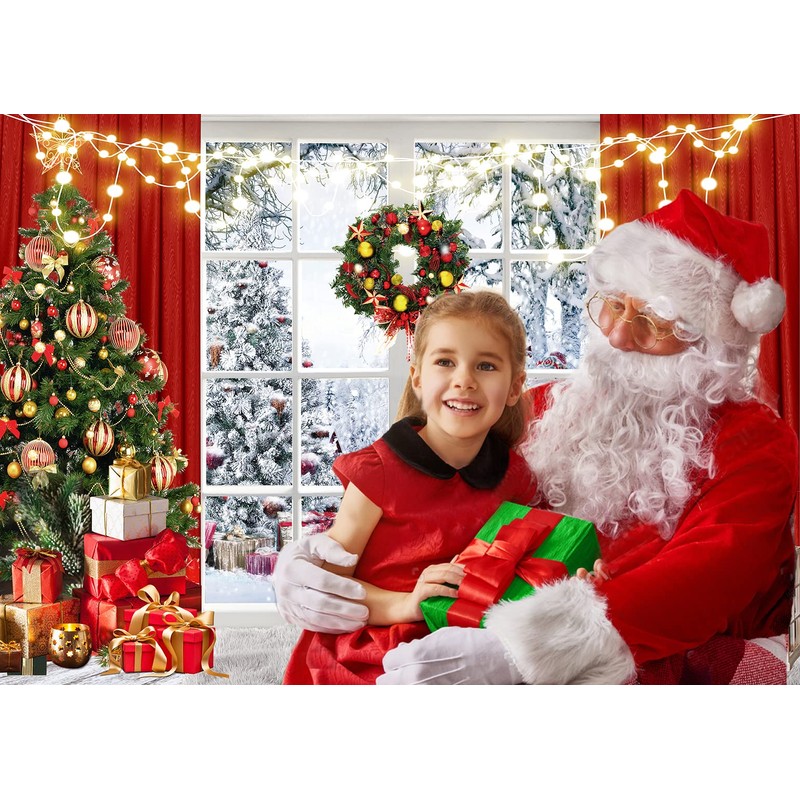 Dudaacvt 7x5ft Christmas Backdrop Christmas Window Backdrop for Photography Xmas New Year Merry Background Christmas Family Holiday Party D649