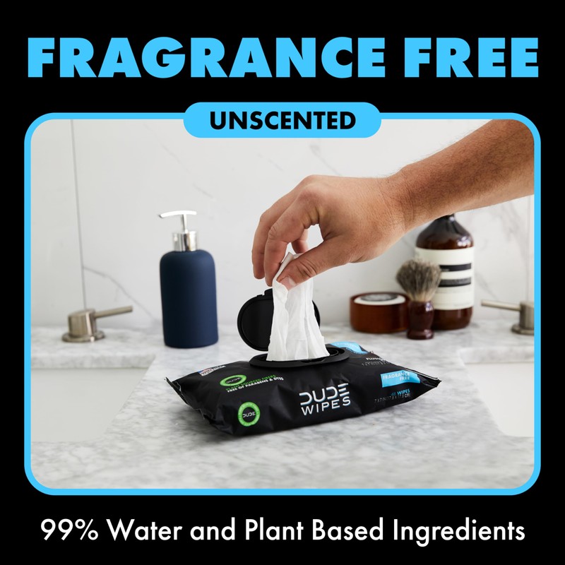 - FRAGRANCE-FREE & CLEAN FORMULA: Made with 99% water and plant-based ingredients, DUDE wipes are unscented, hypoallergenic, alcohol-free, and paraben-free; They're also soaked with Aloe Vera and Vitamin E to protect your most sensitive skin and DUDE regions from irritation